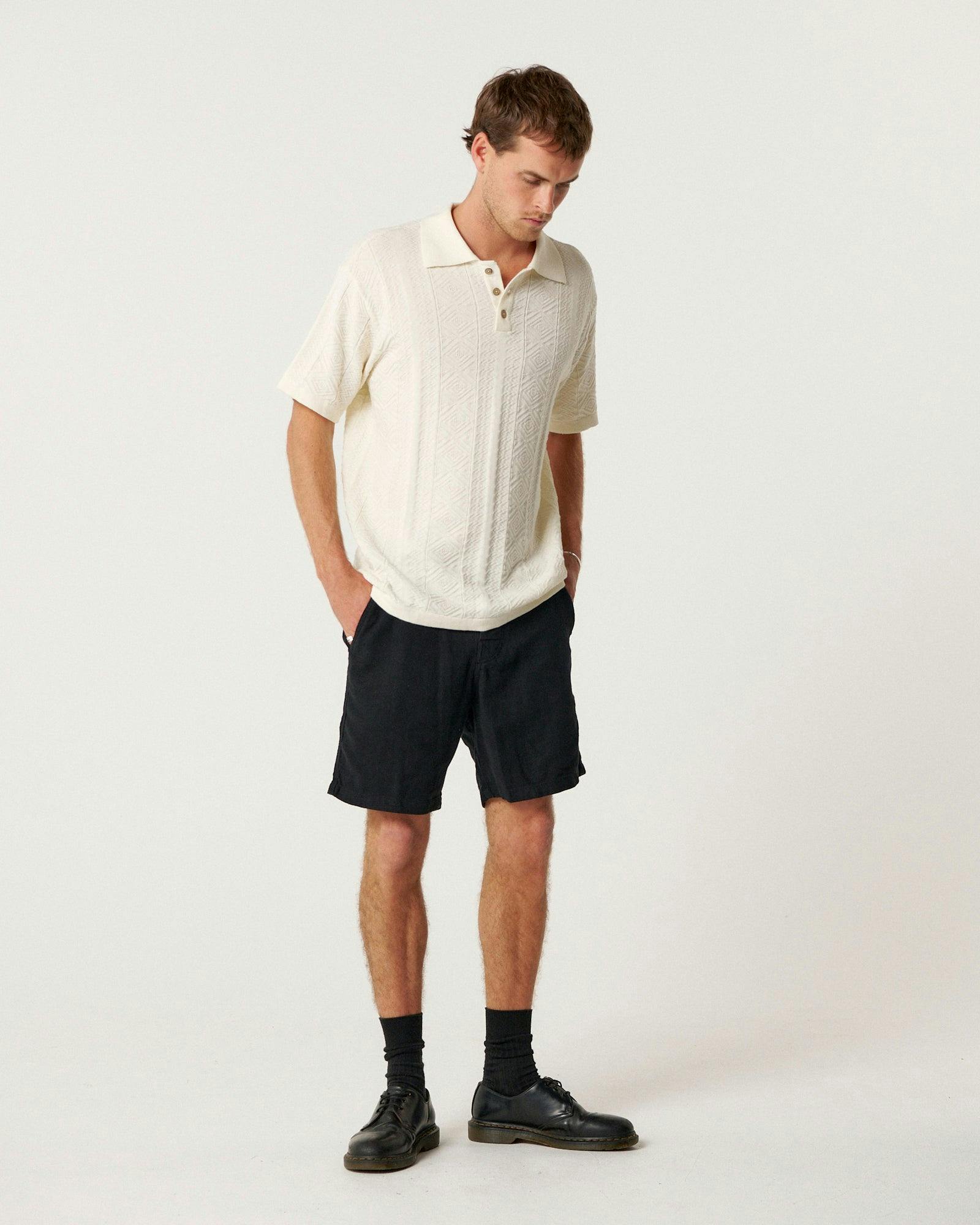 The Trader Knit is spun from 100% cotton yarn for a soft, easy hand feel. Cut in our tried-and-true Critical Slide fit, it walks the line between casual and dressed-up. Finished with coconut buttons and a clean, refined shape. Our model is 6'1" and wearing a size Large. Designed and developed in Bondi, Australia.
