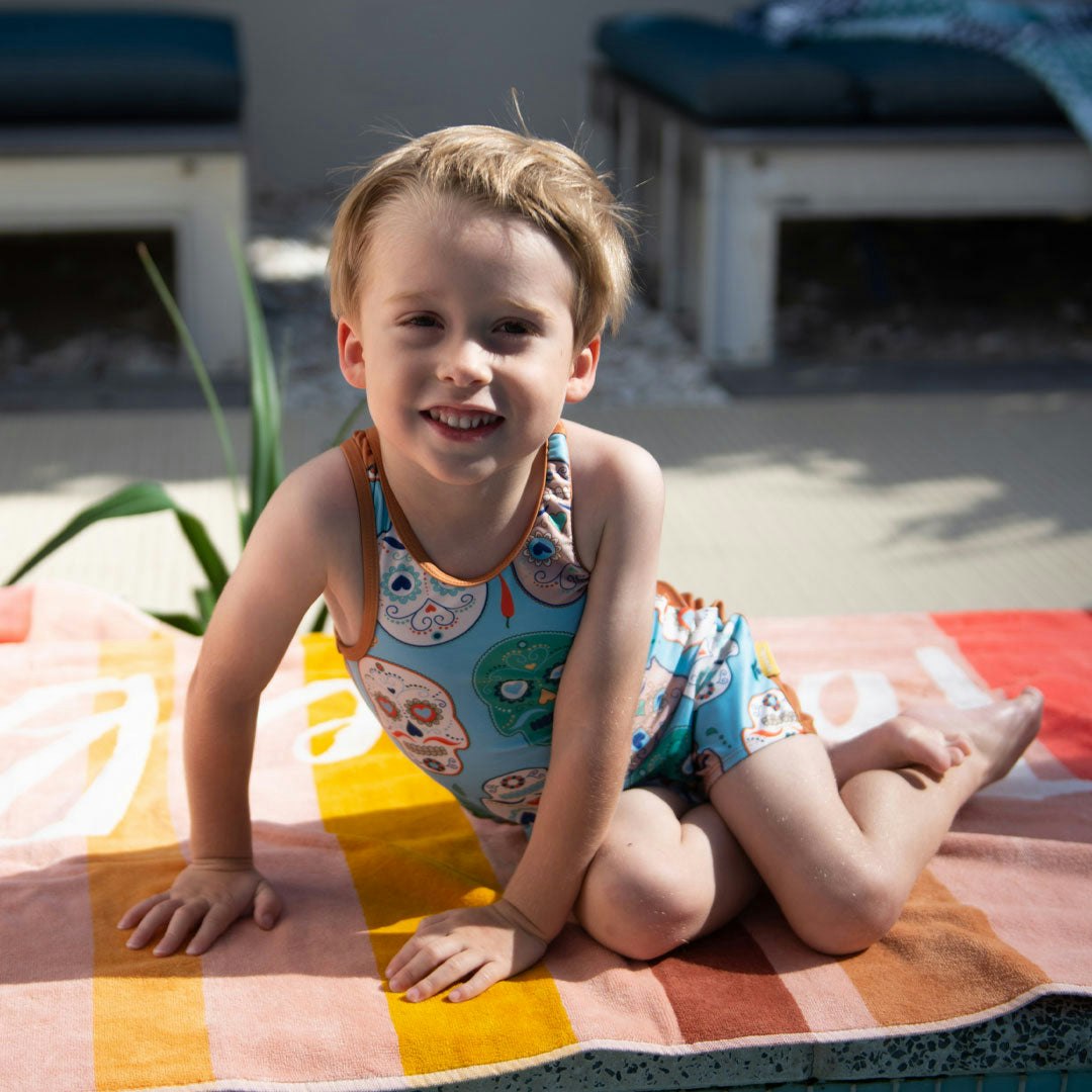 Tyoub Kids Racer Back Kneesuit Zootie Skulls Calaveras | Terracotta