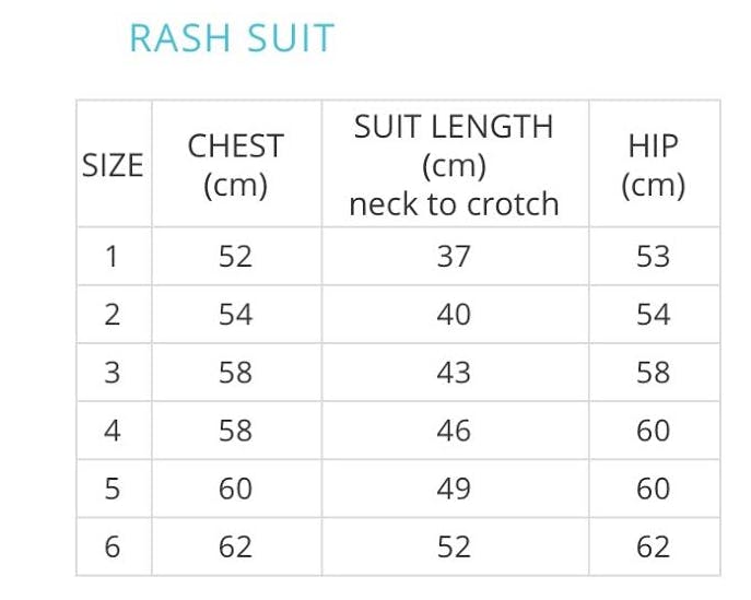 Designed for long days in warm weather, our rash suits provide shelter from the elements. Featuring designs that children love to wear they are made from long lasting Superior Chlorine Resistant Lycra.