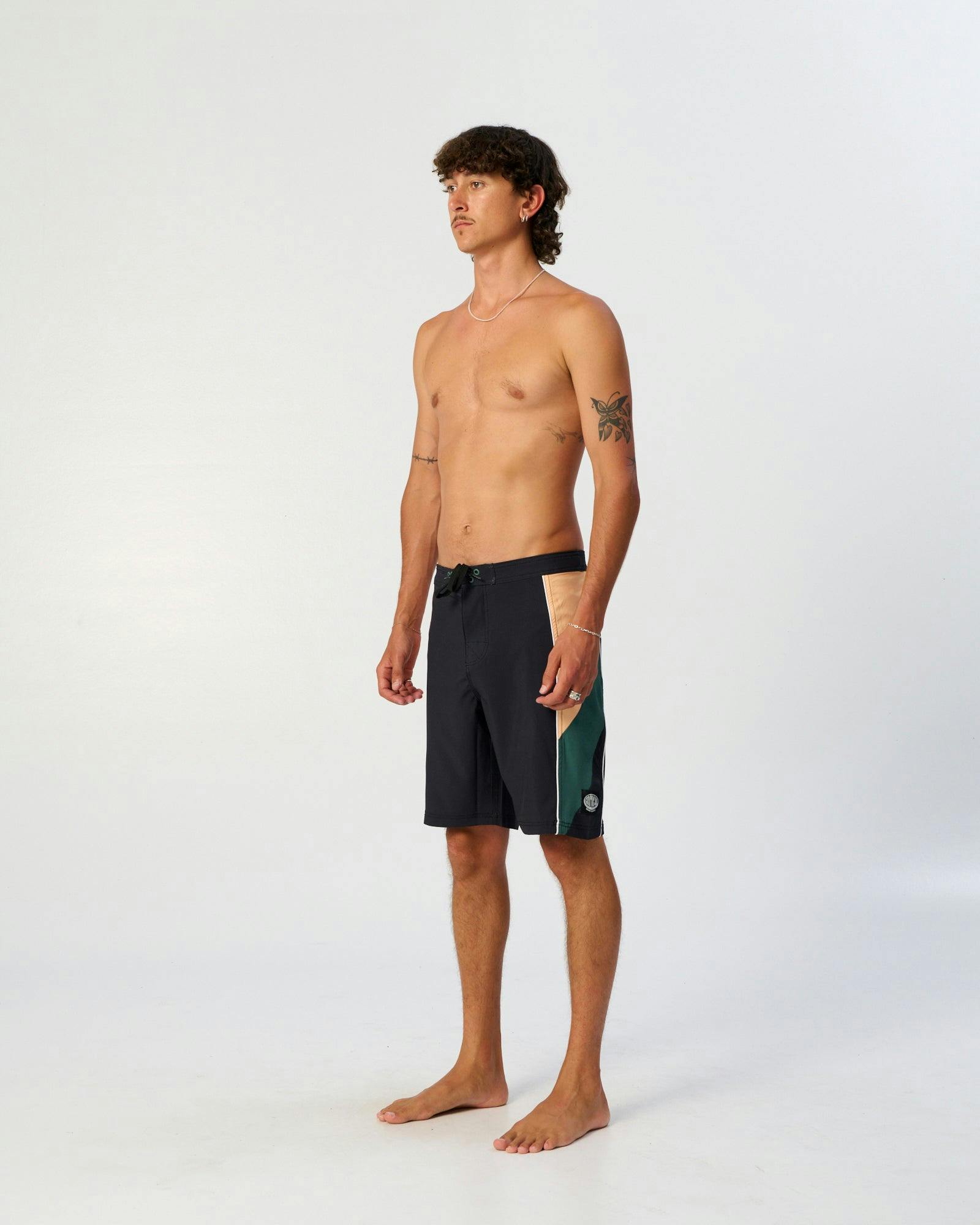 The Warp Boardshort taps into early-00s surf nostalgia—bold side panelling, a hit of embroidery on the back pocket, and that longer 20" outseam we all remember. Cut from a poly/spandex 4-way stretch fabric for full flex and fast dry time. A modern take on a classic era, built to move from carpark hangs to clean lines.